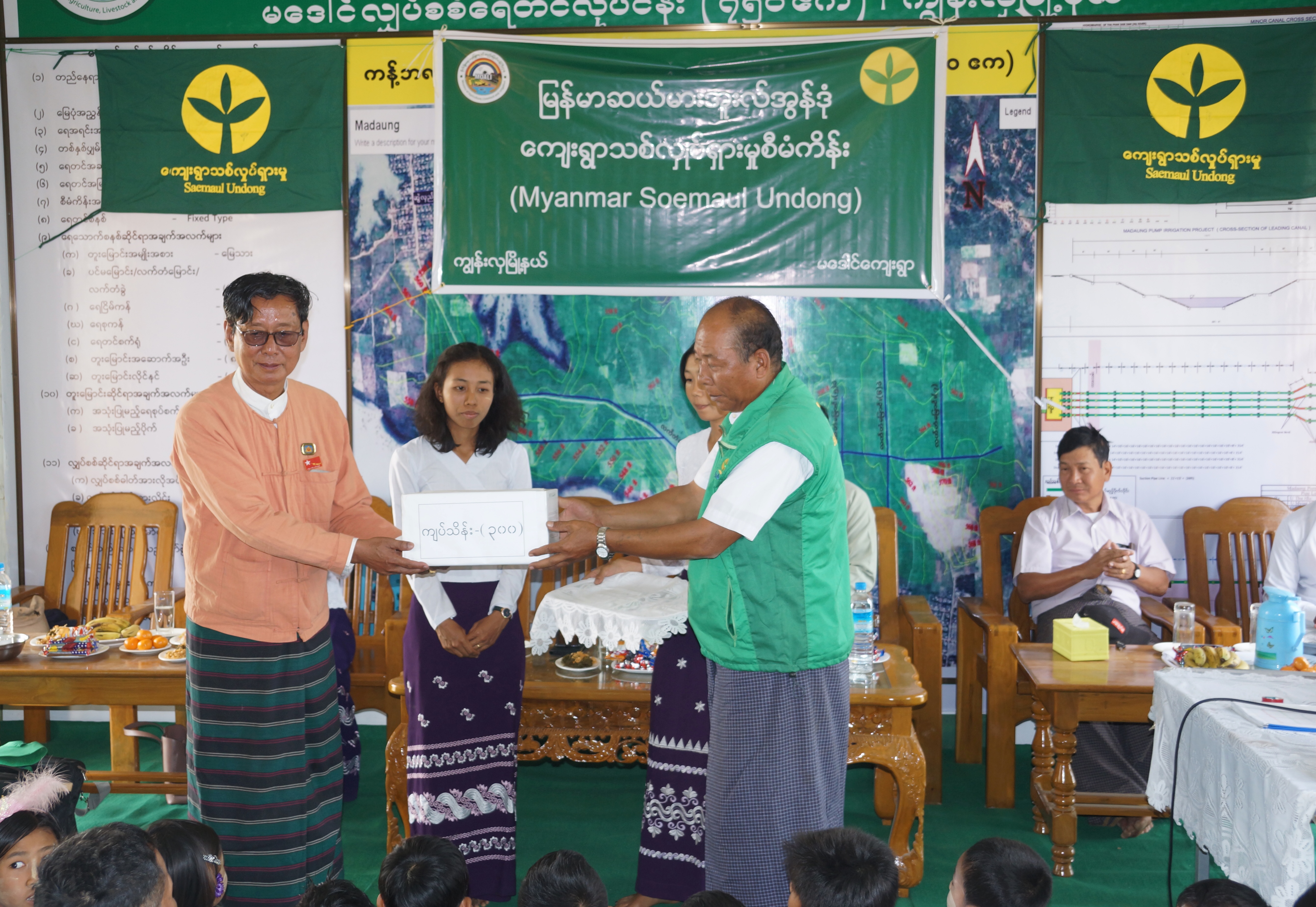 First, Regional Lawmaker U Kyaw Lin and Assistant Township Administrator U Soe Ko Ko delivered addresses and an official from the Department of Agriculture clarified matters relating to the project. Next, they handed over Ks. 30 million and a member of the village committee expressed words of thanks.