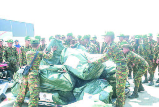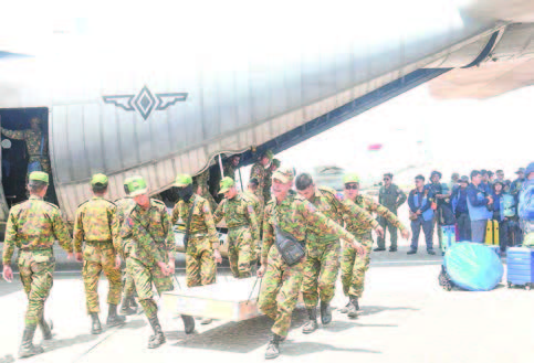 INTERNATIONAL rescue and medical teams arrived at Nay Pyi Taw Tatmadaw Airport according to their respective flight schedules yesterday morning as the government continues to carry out rescue and relief efforts in earthquake-impacted areas.