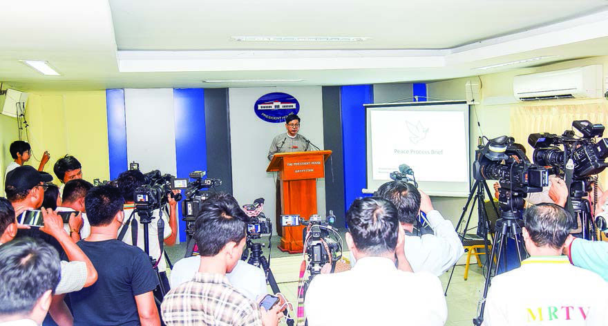The Ministry of Office of the State Counsellor held a press conference on peace making process of the government at the Presidential Palace in Nay Pyi Taw yesterday afternoon.