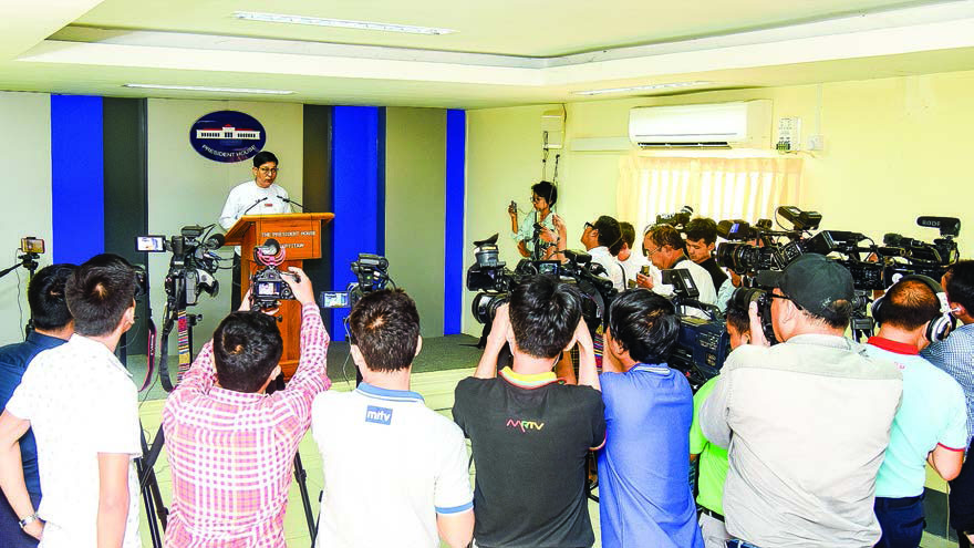 Director-General U Zaw Htay of the Ministry of Office of the State Counsellor met with journalists in a regular press conference held at the Presidential Palace in Nay Pyi Taw yesterday.