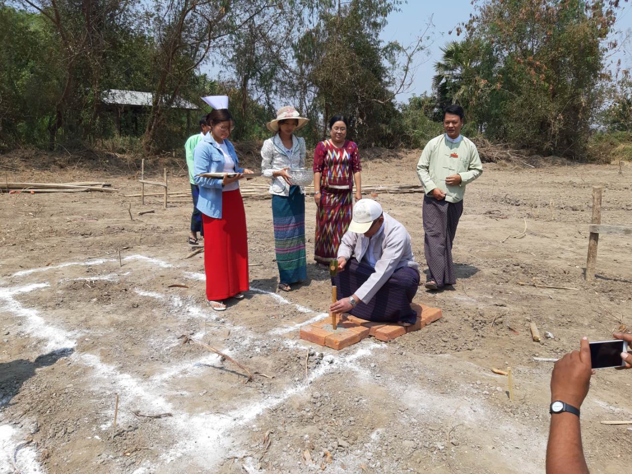 MP U San Kyu of No.1 Constituency of Regional Hluttaw, MP U Khin Maung Lwin of No.2 Constituency of Regional Hluttaw, Township Administrator U San Tun, Medical Officer from Township Department of Public Health, village administrator and officials drove stakes for the construction at the precinct.