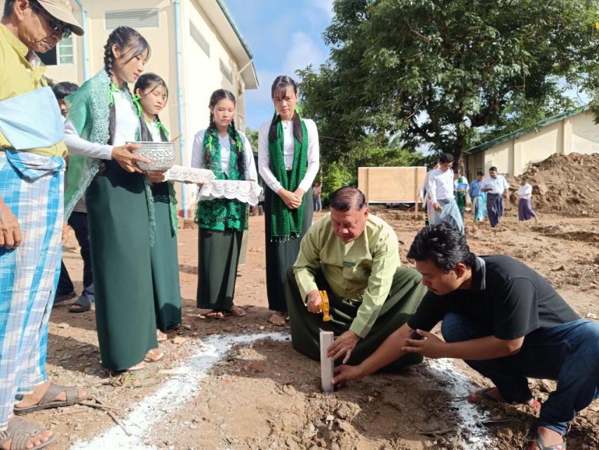 A groundbreaking ceremony for the construction of a new reinforced concrete (RCC) two-storey school building was held on the morning of 12 August at Takongyi Basic Education High School in Takongyi Village, Kangyidaunt Township, Pathein District, Ayeyarwady Region.
