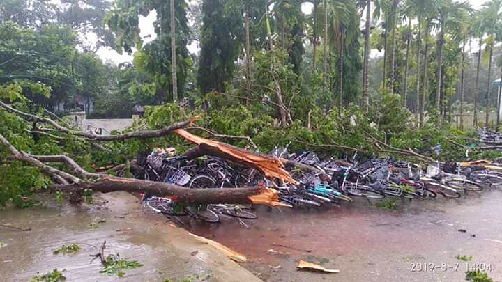 The gusty winds caused the house roofs from villages in the township to flip over. In addition, it also devastated restrooms for schoolgirls and food stalls in BEHS (Alamyo). Furthermore, branches of padauk tree broke down on the students’ bicycles. Therefore, about 30 bicycles were destroyed however; no casualties were reported in the incident, according to the Township General Administration Department.