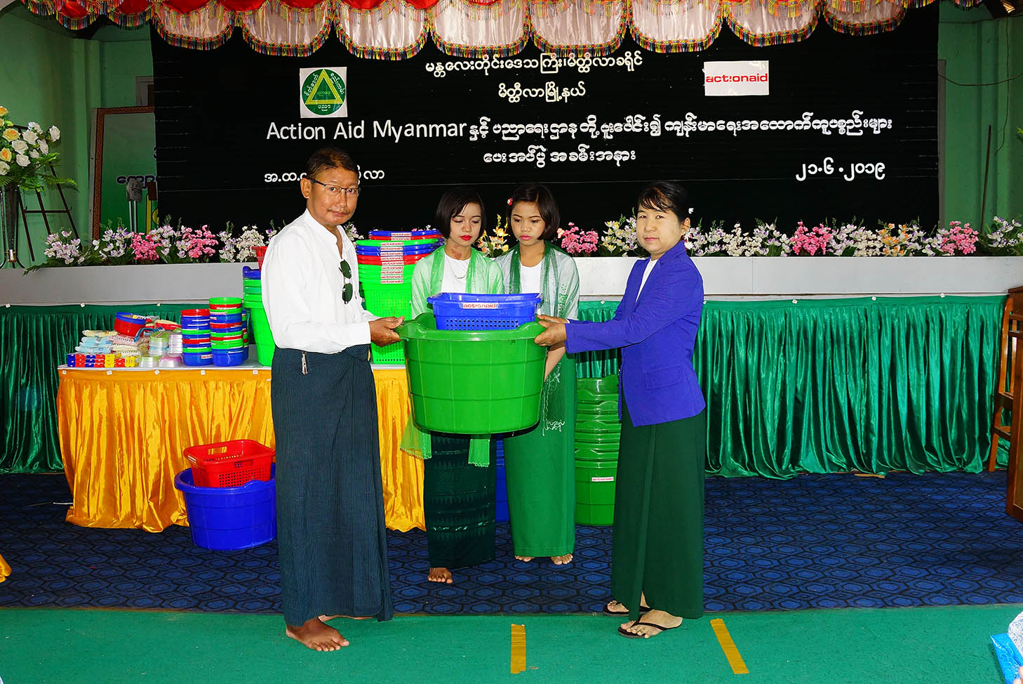 Next, the assistant project officer U Aung Aung Myo from Actionaid Myanmar clarified the purpose of the provision of health aids. The officials handed over health aids to the Heads of the 22 schools.