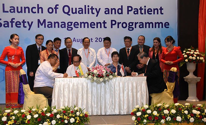 The Singapore International Foundation (SignHealth) and the Temasek Foundation International signed agreements with the ministry to launch of Quality and Patient Safety Management programme. The ceremony was held at the Park Royal Hotel in Nay Pyi Taw yesterday.