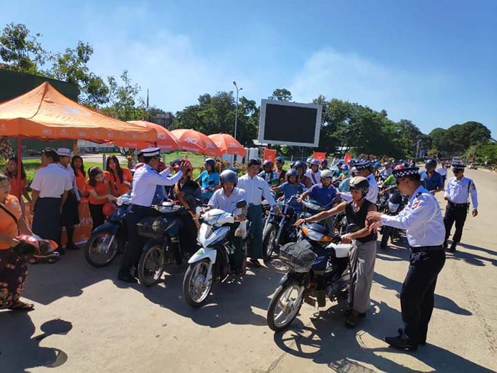 The township’s administrators and traffic police force from Nay Pyi Taw conducted the road safety education campaign, delivering helmets sponsored by Mytel free to the public on Saturday.