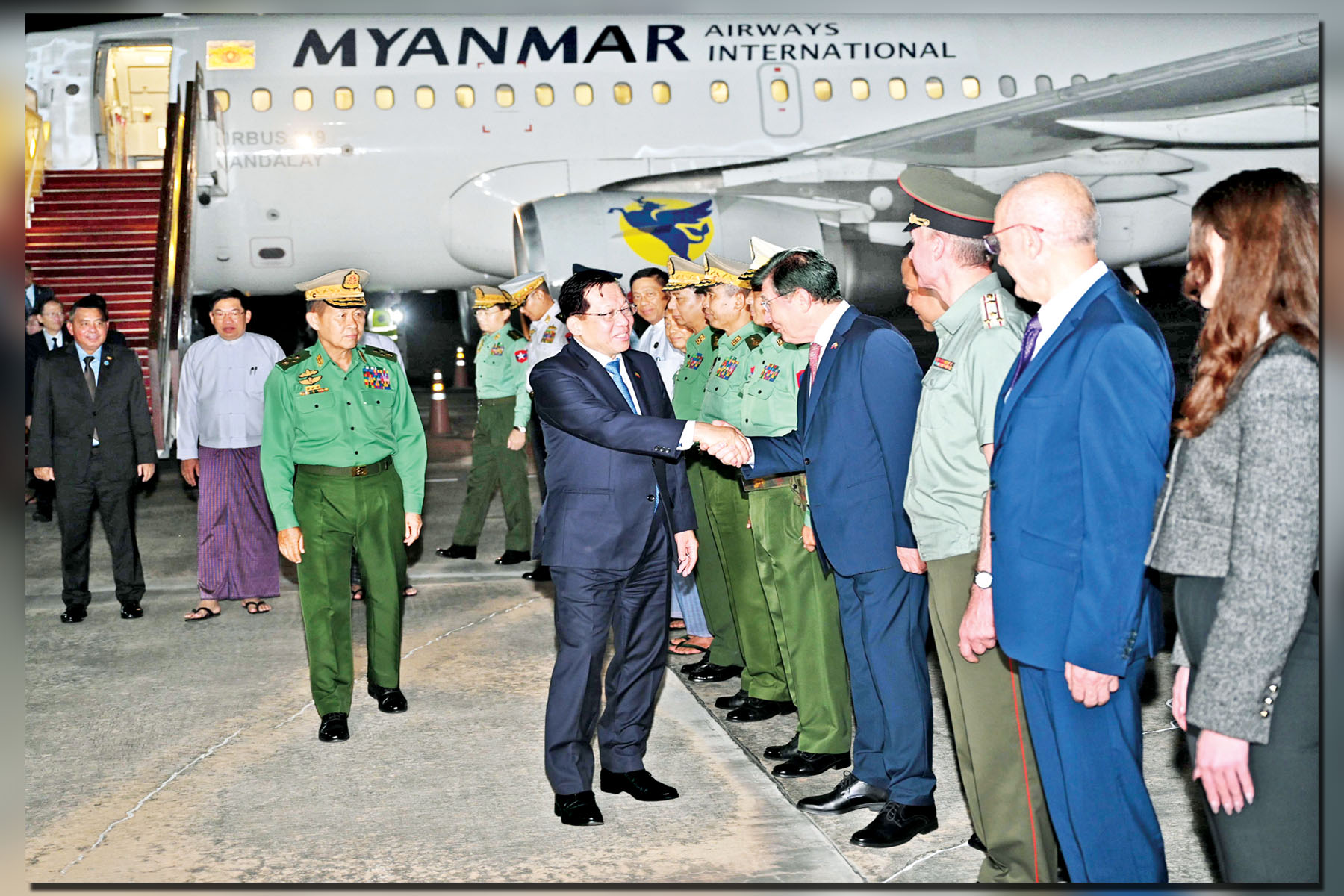 ACTING President and Chairman of the State Security and Peace Commission of the Republic of the Union of Myanmar, Senior General Min Aung Hlaing, paid working visits to the Russian Federation and the Republic of Kazakhstan at the invitation of President of the Russian Federation Mr Vladimir Vladimirovich Putin and President of the Republic of Kazakhstan Mr Kassym-Jomart Tokayev respectively. Yesterday morning, the high-level Myanmar delegation led by the Acting President and SSPC Chairman of the Republic of the Union of Myanmar left the Astana Airport of Kazakhstan for the Republic of the Union of Myanmar. They were seen off at the airport by Mr Roman Sklyar, First Deputy Prime Minister of the Republic of Kazakhstan, U Thit Linn Ohn, Myanmar Ambassador to the Russian Federation, and officials.