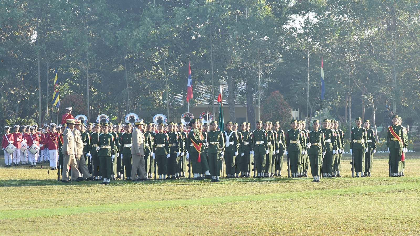Present at the ceremony were the Senior General’s wife Daw Kyu Kyu Hla, Union Minister for Defence Lt-Gen Sein Win and wife, C-in-C of Navy Admiral Tin Aung San and wife, C-in-C of Air Force General Maung Maung Kyaw and wife, Tatmadaw officials from C-in-C of Defence Services Office and their wives, the Commander of Yangon Command, the commandant of the training school, officials from Yangon cantonment, invited guests, and the families and relatives of the graduating cadets. Earlier in the afternoon, the Senior General delivered a speech at the opening ceremony of a three-storey building for Yangon Tatmadaw hospital’s advanced diagnostic and cancer treatment department.