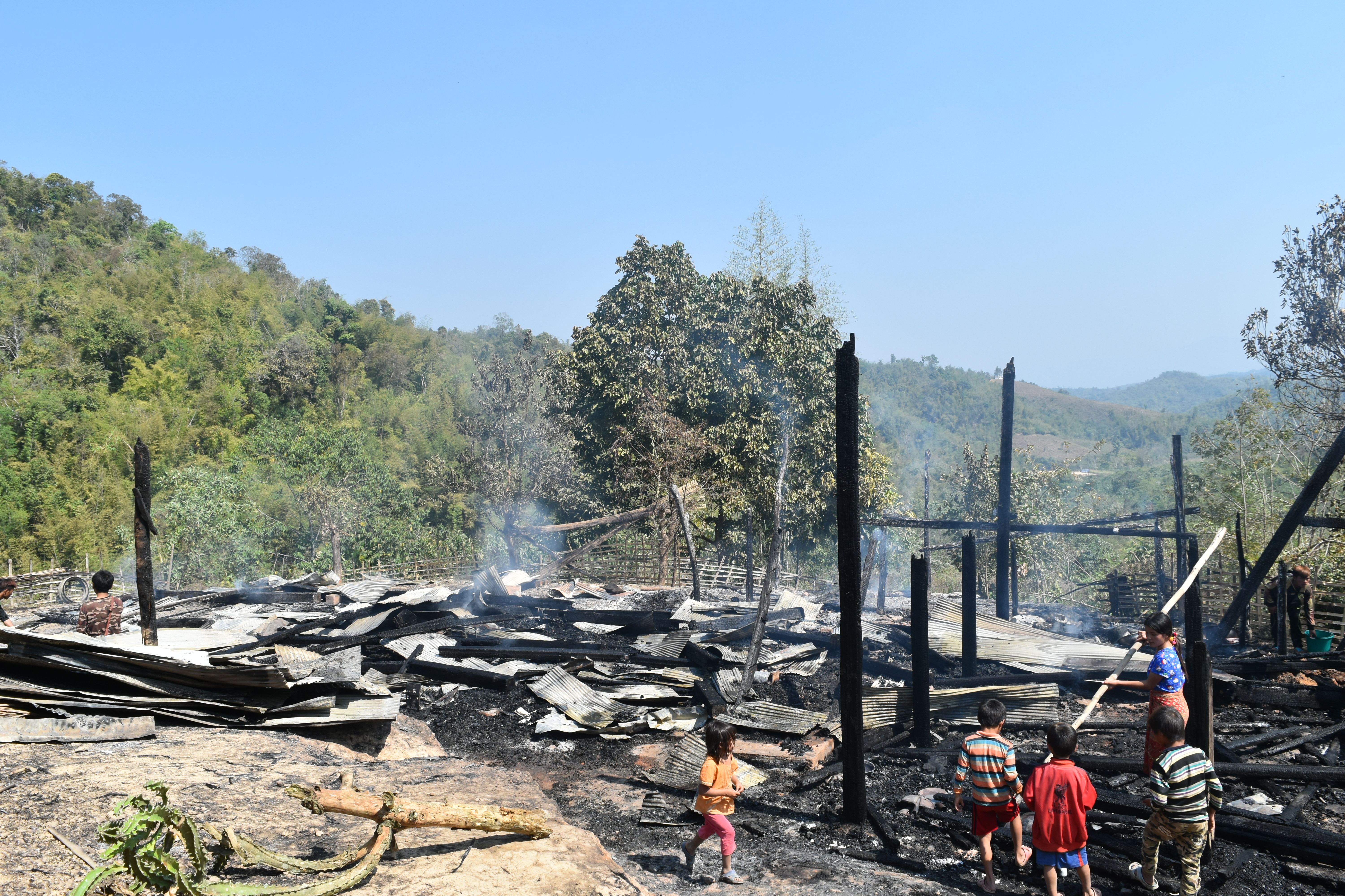 The fire was believed to have started from an overheated battery connected to a solar panel in the house of U Kani. Soon after receiving the news, a joint contingent of firefighters, local police and officials led by Towship Administrator U Thet Lwin rushed to the scene and put out the fire. The fire was brought under control within 30 minutes. The house of U kani was destroyed beyond recognition in the fire, which left no one dead or injured.