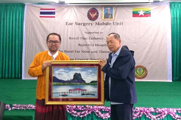 Afterwards, U Saw Chit Khin, the Speaker of the Kayin State Hluttaw, presented gifts to Thailand’s Ambassador to Myanmar, and U Bo Bo Wai Maung, the Minister of Social Affairs for Kayin State, gave presents to the leader of the team of ear specialists.