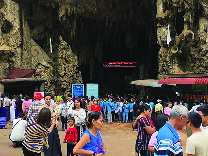 The Htamsan cave in Hopong Township, Pa’O Self-administered zone, southern Shan State has attracted a large crowd of visitors, who are flocking to the spot with family and friends, during the Thadingyut holidays, which started on 11 October and end on 15 October.