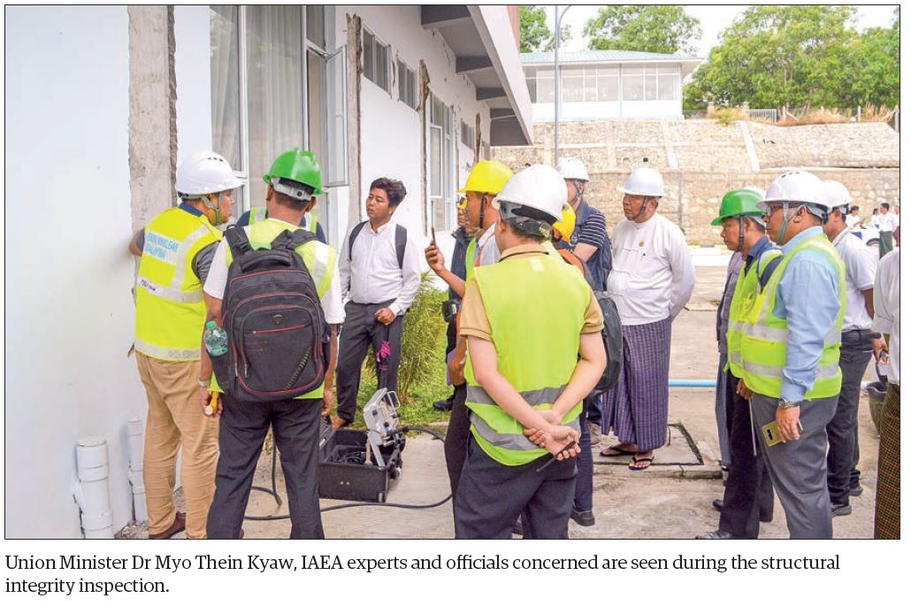 UNION Minister for Science and Technology Dr Myo Thein Kyaw, accompanied by officials, yesterday morning observed ongoing structural integrity inspections of buildings of the ministry affected by the Mandalay earthquake that struck on 28 March.