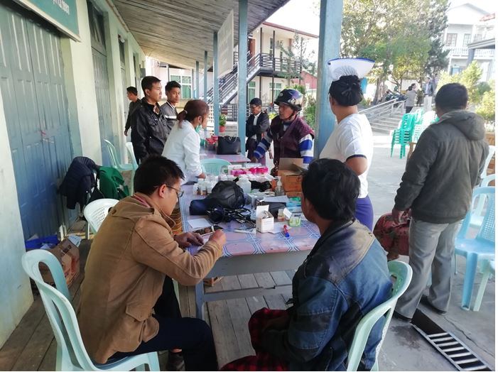 Medical staff from Departments of the township Public Health and Traditional Medicine provided free medical check-ups and necessary health care to internal displaced people at Tha Tlang Baptist Church(TBC) in the town of Than Tlang, Haka District in Chin State yesterday morning.