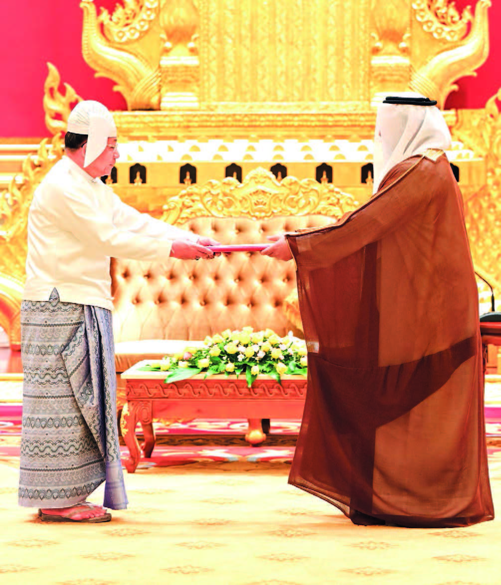 Chairman of the State Administration Council Prime Minister Senior General Min Aung Hlaing accepted the Credentials of Ambassador-designate Mr Mutaz Abdullah Abdulijaleel Mohamed Al Faheem of the United Arab Emirates to Myanmar at the Credentials Hall of the Office of the State Administration Council in Nay Pyi Taw yesterday morning.