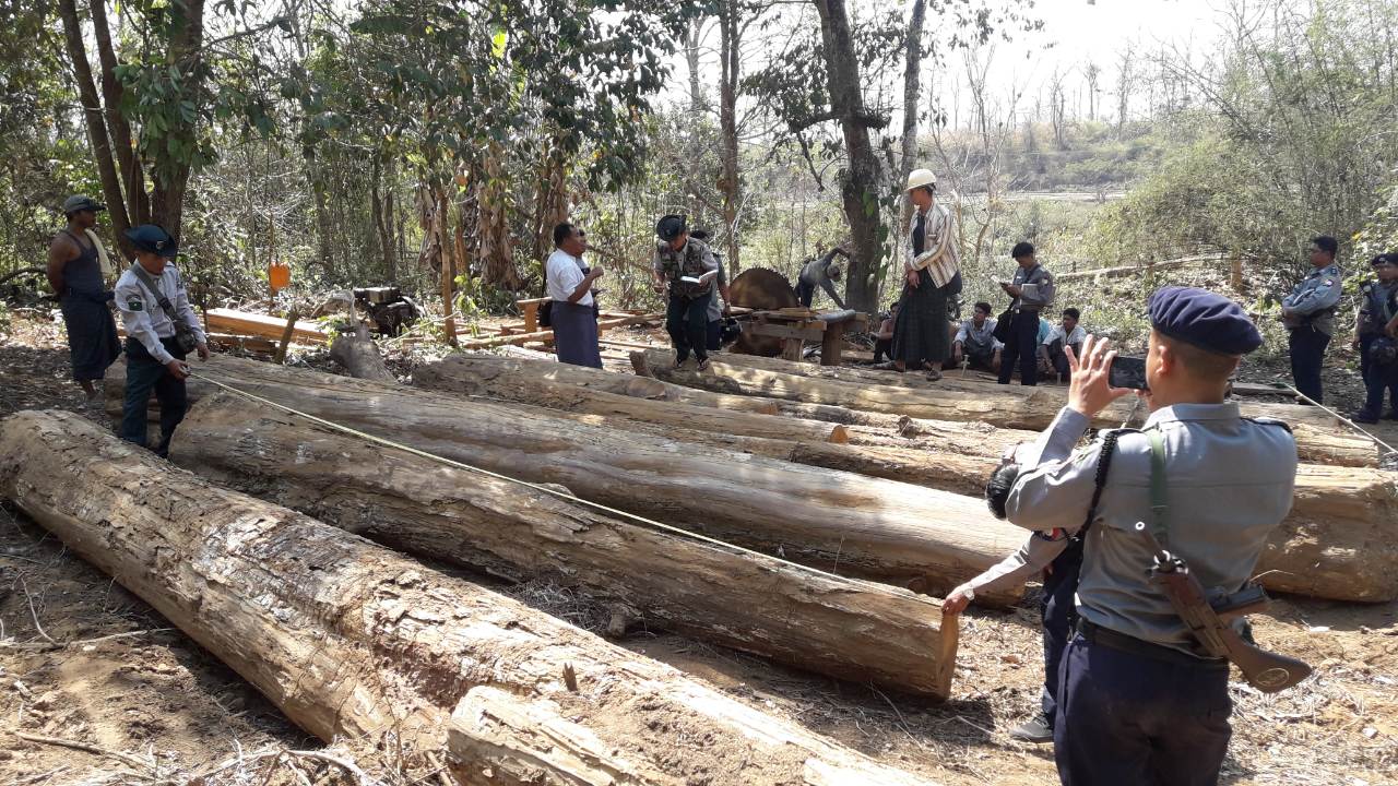 Authorities seized an illegal sawmill and teak logs in Butasu Ward, Naba Village, Indaw Township in Sagaing Region yesterday.