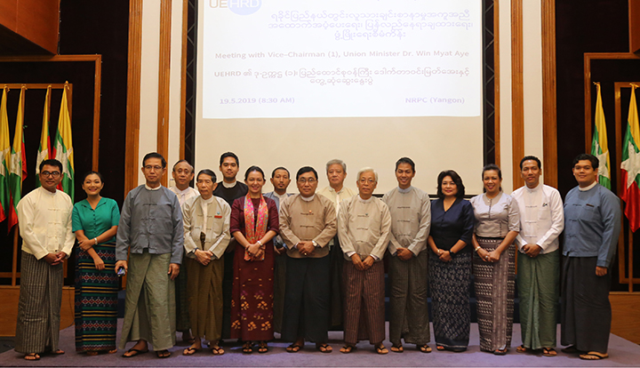 Vice Chairman (1) of the UEHRD, Union Minister for Social Welfare, Relief and Resettlement, Dr. Win Myint Aye discussed the implementation status of UEHRD activities with UEHRD committee members and members of the OWG – Outreach Working Group.