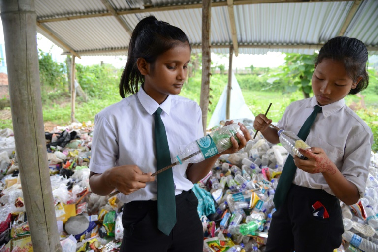 Every week the 110 pupils at the Akshar Forum school outside Dispur in Assam state must bring up to 20 items of plastic gathered from their homes and the local area.