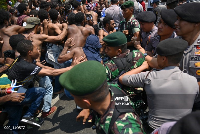 The unrest came after reports that authorities tear-gassed and briefly detained some 43 Papuan university students in Surabaya, Indonesia's second-biggest city, on Saturday -- the country's independence day.