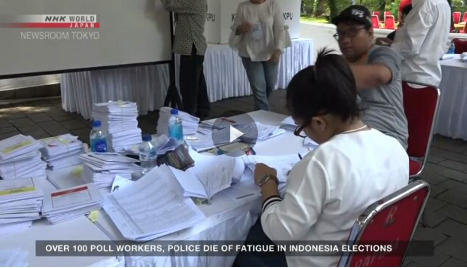 More than 100 poll workers and police officers in Indonesia have died during and after last week's elections. Fatigue has been cited as the main cause.