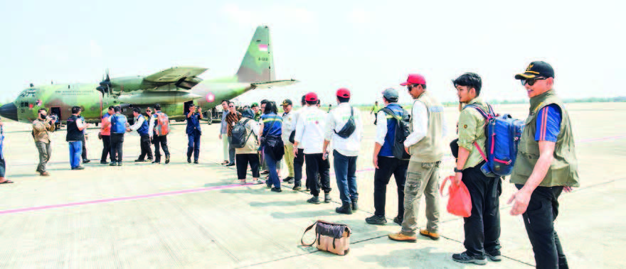 THE 41-member Indonesian emergency medical team led by Police Brig-Gen (Retired) Ary Laksmana Widjaja departed from Nay Pyi Taw yesterday morning on two separate flights back to Indonesia. Officials from the National Disaster Management Committee, Minister-Counseller of Indonesian Embassy to Myanmar Mr Harlianto and Indonesian Defence Attaché Col (Mar) Budi Chayono saw them off at Nay Pyi Taw Airport.