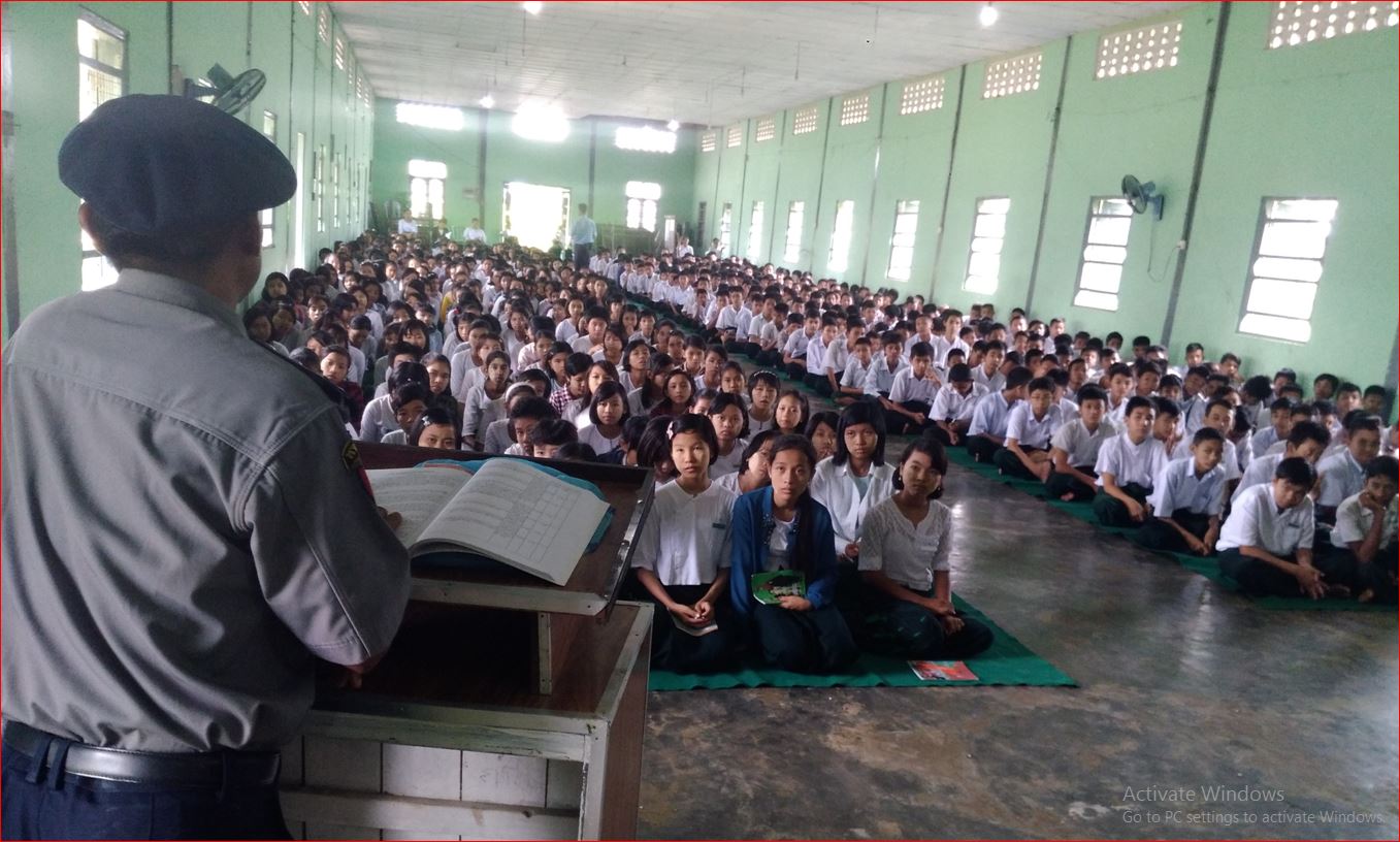 Informative talk on reduction of crimes, traffic accidents and prevention of human trafficking was held at B.E.H.S in the town of Dedaye, Pyapon District, Ayeyawady Region yesterday.