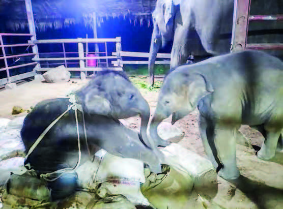 At the camp, a female elephant named Pearl Sanda gave birth to twins and Kyaw Pearl, a male elephant is now unable to move his back part after being accidentally hit by his mother’s leg, causing a spinal cord injury.