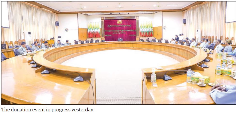 The donation ceremony was attended by Union Election Commission Chairman U Ko Ko, Vice-Chairman U Than Soe, commission members, officials from the Union Election Commission Office, and representatives from the Interfaith Dialogue Group.