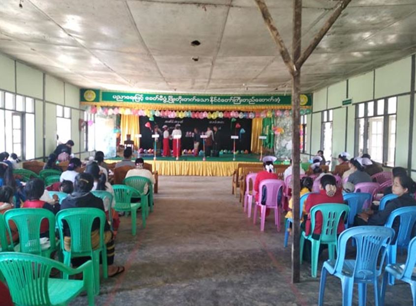 First, senior nurse Nan Kham Khin made an opening speech, followed by the presentation about children’s rights by the school principal Nan Khin Hmwe. Then, senior project officer Dr. Ei Tinza Haing explained the works being carried out by Save the Children organization to the attendees. Then, schoolchildren performed songs and competed in games.