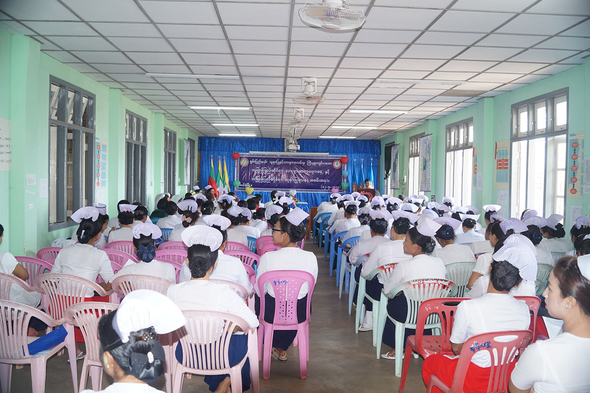 The ceremony was organized by the Shan State Nurse and Midwife Association. The ceremony was opened by trainees from a midwifery school in Taunggyi by singing a song. Firstly, an official from the of the Livestock Breeding and Veterinary Department gave a speech and an assistant director from the Department of Public Health read out a message sent by the President of the Myanmar Nurse and Midwife Association Professor Daw Yin Mya.