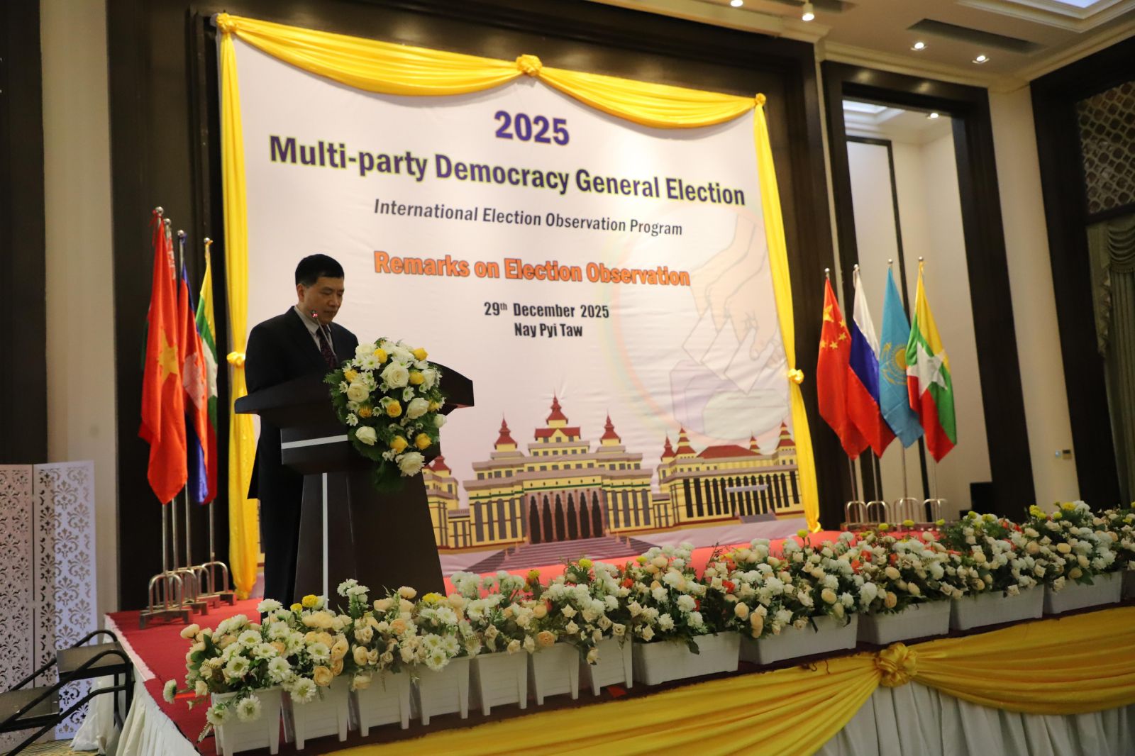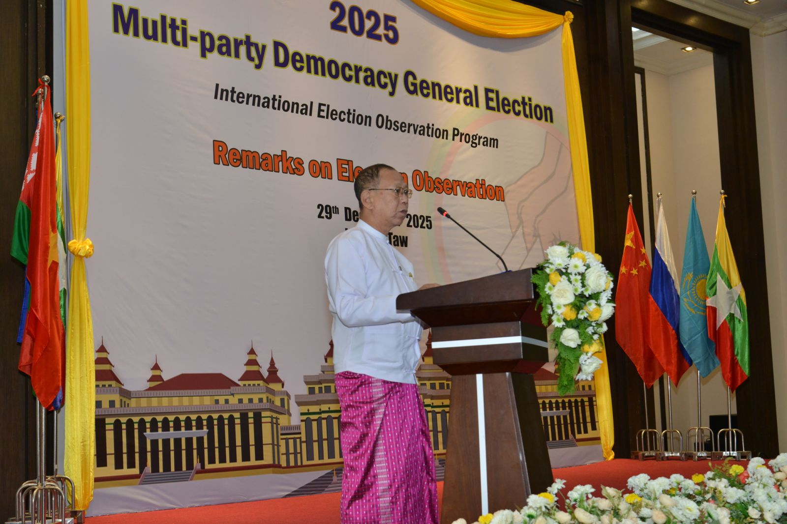 A CEREMONY of remarks on observation by international election observers who monitored Phase I of the multiparty democratic general election held in 102 townships on 28 December 2025 took place at the Jasmine Nay Pyi Taw Hotel in Nay Pyi Taw yesterday morning, with an address by Chairman of the Union Election Commission U Than Soe.