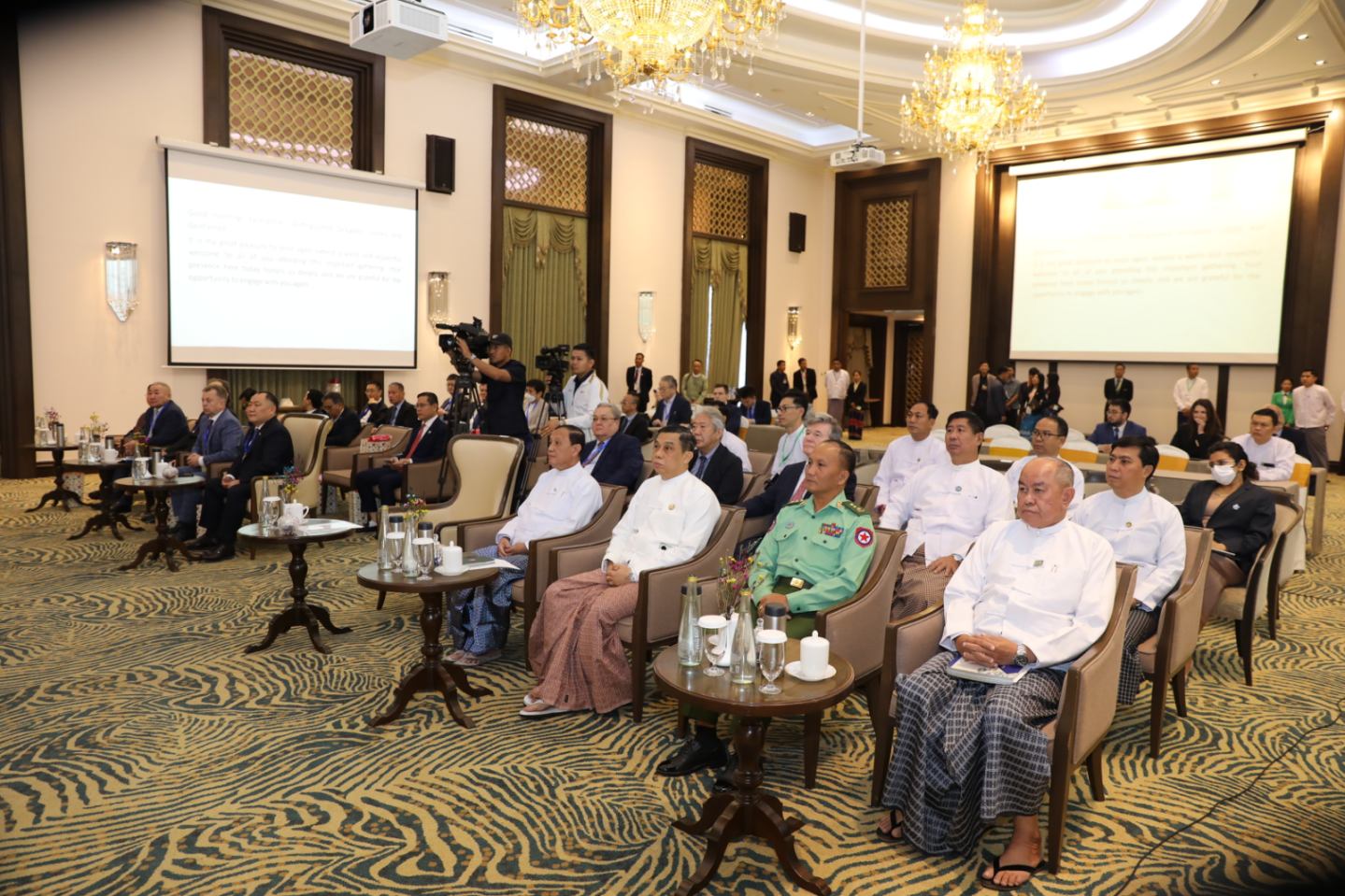 Also present at the ceremony were UEC member U Myo Hlaing, deputy ministers, election observation delegations led by Deputy Chairman of the State Duma of Russia Mr Sholban Kara-Ool, Central Election Commission member of Russian Mr Igor Borisov, Special Envoy for Asian Affairs of the Chinese Ministry of Foreign Affairs Mr Deng Xijun, Ms Chen Xuanbo from the International Department of the Central Committee of the Communist Party of China, Deputy Chairman of the Election Commission of Kazakhstan Mr Yerman Mukhtar, member of the Cambodian Election Commission Mr Yich Samethy, Head of International Relations of the Socialist Republic of Vietnam Mr Nguyen Duc Thinh, Mr Mario Jose Armengol Campos from Nicaragua, Retired Maj-Gen Mr Sahni Arun Kumar of India and Mr Yusuke Watanabe of the Japan-Myanmar Association, directors-general of the relevant ministries, and officials from the UEC Office and guests.