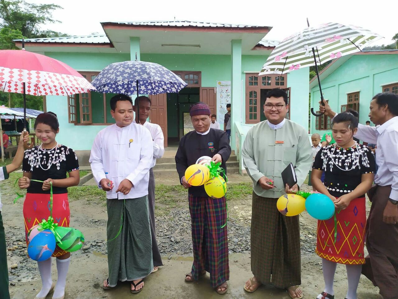 The facilities were built with the contributions of the Japanese government. On the occasion, the Kachin State MP U Zaw Dwe, Township Administrator U Zarni Toe and Dr. Aung Naing Tun from the Department of Public Health cut a ceremonial ribbon to open the rural healthcare center.