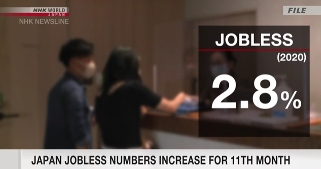 The Internal Affairs Ministry released the latest data on Friday. The number of people unemployed was over 1.9 million. The seasonally adjusted jobless rate stood at 2.9 percent, the same as the previous month.