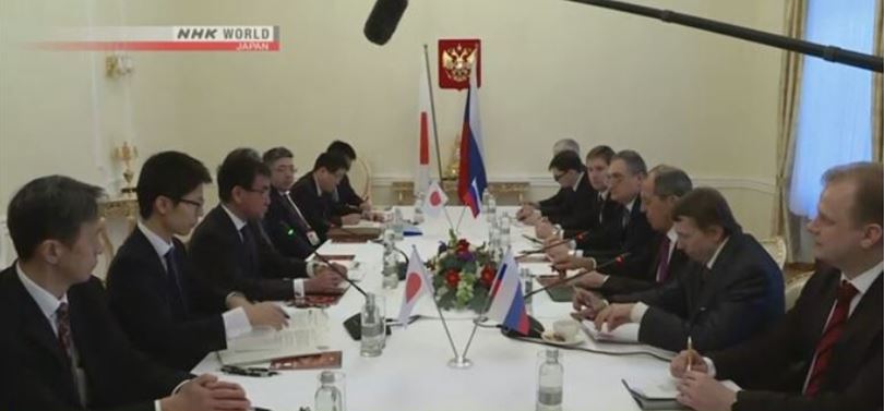 The two leaders agreed to accelerate bilateral negotiations based on the 1956 Japan-Soviet joint declaration. Lavrov called on Japan to recognize Russia's sovereignty over the islands as a prerequisite for negotiations. He said the islands became part of Russian territory as an outcome of World War Two. Kono responded by explaining Japan's position. However, the ministers agreed to continue negotiations on the issue.