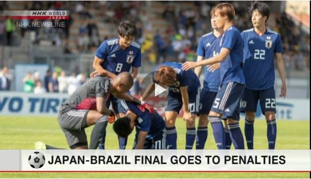 Japan advanced to the final of the Toulon Tournament for the first time after beating Mexico in penalty kick shootouts.In the 19th minute of the final on Saturday, Brazil scored its first goal. In the 39th minute, Japanese striker Koki Ogawa curled an equalizer into the net. In the second half, neither side scored. Tied 1-1, the game went into penalty shootouts. All Brazilian players succeeded in the penalty shootouts.