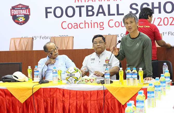 Football experts from Japan conducted the Myanmar-Japan Football School Coaching Course yesterday at the conference room of the Thuwunna Stadium in Yangon.