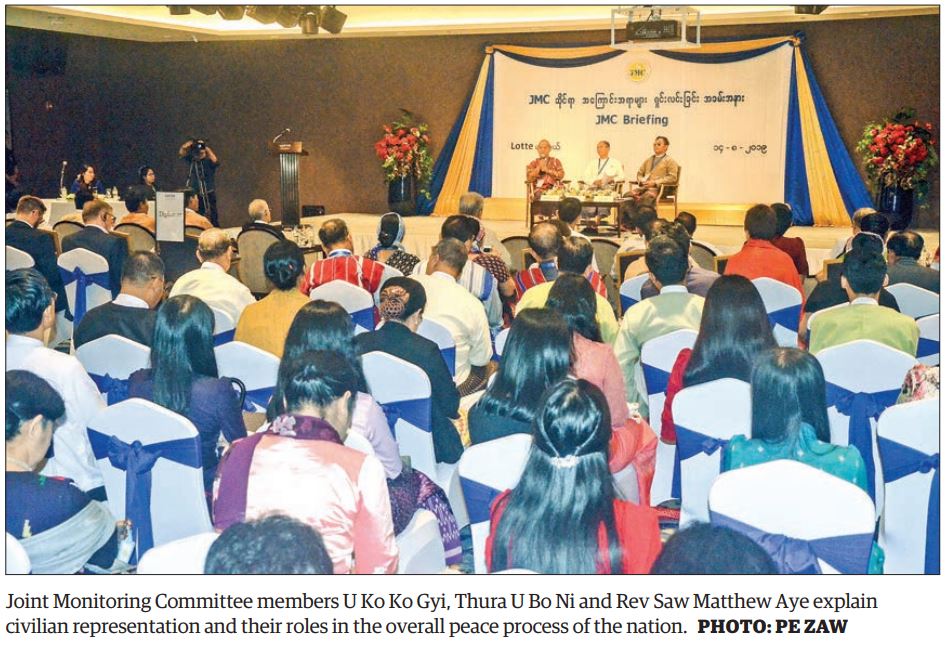 CIVILIAN representatives who are involved in the different levels of the Joint Monitoring Committee on Ceasefire (JMC) explained their progress during a briefing organized at Lotte Hotel in Yangon yesterday.