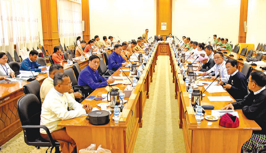 The meeting was attended by Chairman of the Joint Committee Pyidaungsu Hluttaw Deputy Speaker Pyithu Hluttaw Deputy Speaker U Tun Aung (a) U Tun Tun Hein, Deputy Chairman of the Joint Committee Amyotha Hluttaw Deputy Speaker U Aye Tha Aung, Joint Committee secretary Dr Myat Nyana Soe, joint secretary U Htay Win Aung (a) U Pyone Cho and members who were Hluttae representatives from political parties and Tatmadaw Hluttaw representative and officials from Pyidaungsu Hluttaw Office. — MNA (Translated by Zaw Min)