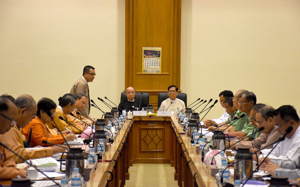 The meeting was attended by Chairman of the Joint Committee Pyidaungsu Hluttaw Deputy Speaker Pyithu Hluttaw Deputy Speaker U Tun Aung (a) U Tun Tun Hein, Deputy Chairman of the Joint Committee Amyotha Hluttaw Deputy Speaker U Aye Tha Aung, Joint Committee secretary Dr Myat Nyana Soe, joint secretary U Htay Win Aung (a) U Pyone Cho and members who were Hluttaw representatives from political parties and Tatmadaw Hluttaw representatives and officials from Pyidaungsu Hluttaw Office. — MNA