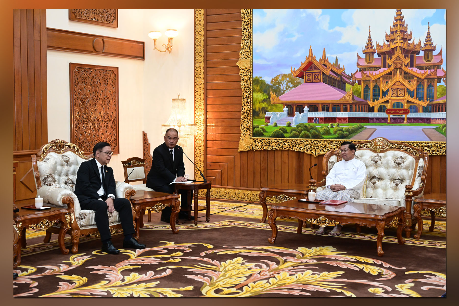 Acting President of the Republic of the Union of Myanmar and State Security and Peace Commission Chairman Senior General Min Aung Hlaing received a delegation led by Mr Sihasak Phuangketkeow, Minister of Foreign Affairs of Thailand, at the Bayintnaung Villa in Nay Pyi Taw yesterday afternoon.