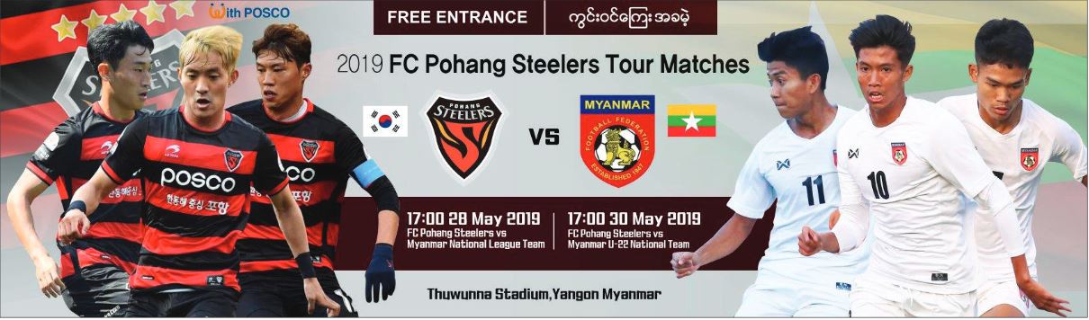 POHANG  Steelers  FC  of  the  Republic  of  Korea’s  League  (K-League) will play two friendly matches in Myanmar, according to the Myanmar Football Feder-ation (MFF).