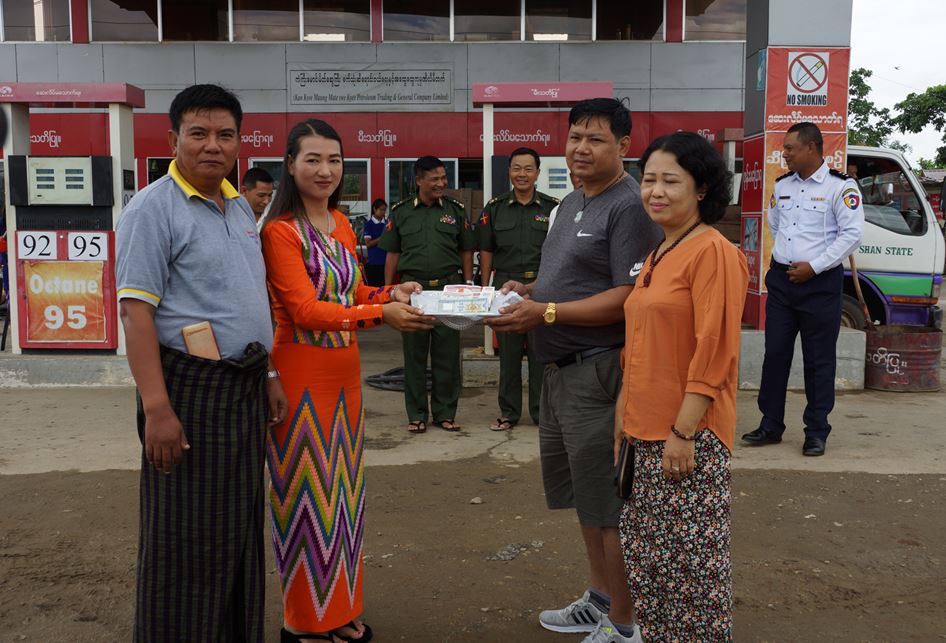 The owner of the gas station and his wife gave the owner back the money in the presence of officials from the township departments.—Kyaw Kyaw Htwe