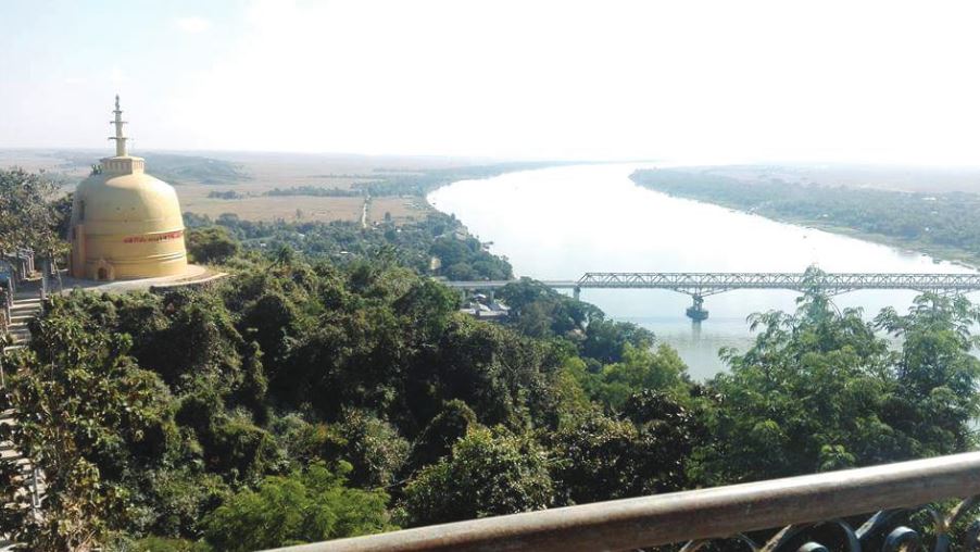 The Kacchapanadi is pleasant with its both banks covered with vast greenery fields, lush forests and wood-ed mountains crowned with ancient Pagodas. The Urit-daw mountain near Ponnagyun, the Selagiri mountain on the other bank of Kyauktaw and the Be-ngar-yar Taung ( Mountain of 500 Ducks), immediately west of the Yoe creek, a major tributary of the Kacchapanadi river, are attractive tourist destinations on the  river . The skull-relic of the Buddha is enshrined in the Urit-daw stupa at the prophecy of the Buddha. It is datable back to the 3rd century B.C.  When Buddha came to Dhannavati city in response to the mental invitation of King Candasuri-ya in the 123 M.E , he took a stand at the top of the Selagiri mountain . To commomerate this great event, the Kyauk-taw pagoda was later built with the enshrinement of the spine-relic of the Buddha at that very spot. The Be-ngar-yar mountain is figuratively called ‘ Mt. Fuji of the Rakhine State’ for the breath-taking beauty it offers. The Kacchapanadi bridge near Kyauk-taw, the first river-crossing bridge in Rakhine State opened in 2010, is also a beautiful spot on the Kacchapanadi river.
