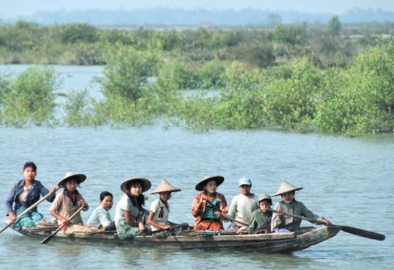 The Kaladan valley is formed by the deposition of the sediments carried by the tributaries of the La-ymyo river a few miles to its east. It starts a little distance up Kyauktaw and stretches as far south as Sittwe, as far east as Mrauk-U, Minbya and Myebon and as far west as the base of the Be-ngar-yar Taung (Mountain of 500 Ducks) in Ponnagyun township. Roughly speakingly, it covers a total area of 1400 square miles, measuring 55 miles from the north to the south and 25 miles from the east to the west. It is very fertile and the largest valley in the Rakhine coastal region. Therefore, ancient Rakhine kings established ancient cities such as Dhannavati, Vesali and Mrauk U in this valley. Today, Sittwe, Kyauktaw, Mrauk U, Ponnagyun and Pauktaw are located there. The Kaladan valley is commonly called ‘ Sittwe Valley’ due to the prosperity of Sittwe. The Kala-dan river-valley development project was launched in 1999. It aimed to build the motor-road from Me-zo-ran State in India to Sittwe through Palawat, to dredge the sediments deposited in the shallow areas of the Kaladan river, to build ships and wharfs and to upgrade the Sittwe-port.