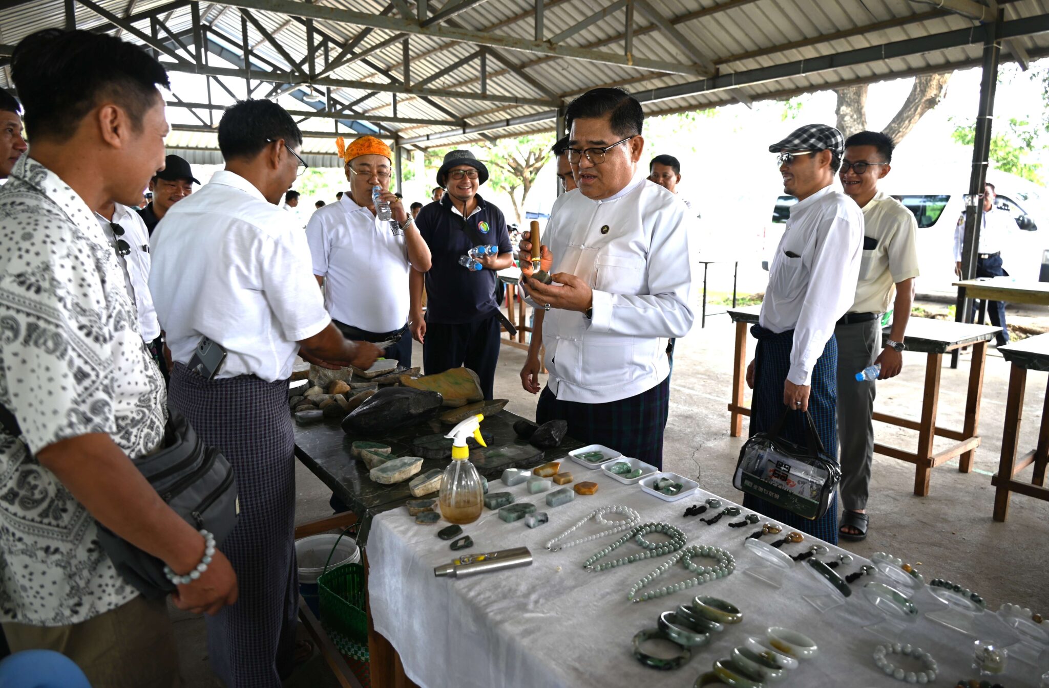 Kachin State Chief Minister U Khet Htein Nan inspected the jade and finished jewellery shops in the Gems and Jewellery Entrepreneurs Association compound in Sitapu ward of Myitkyina township yesterday. During the inspection, he urged concerned personnel to work together to accelerate the transactions, although the sales are slack currently. The chief minister comforted the internally displaced persons who are sheltering at 18 places in Myitkyina at Manaw Shwe Pyi Hall on 30 May. The chief minister and relevant officials provided 1,765 people of 346 households with K25,950,000 worth of 346 rice bags donated by the National Disaster Management Committee and K5,709,000 worth of 346 cartons of instant noodles donated by the state government. — State IPRD/KTZH