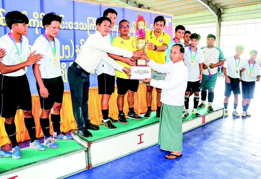 THE final match and awarding ceremony of the 2025 Sagaing Region Chief Minister’s Inter-District U25 Men’s Futsal Championship took place yesterday afternoon at the Futsal Gymnasium in the Public Sports Grounds, Monywa. Sagaing Region Chief Minister U Myat Kyaw and his wife, the Region Chief Justice and his wife, region, district and township officials, team coaches, and athletes attended the event.