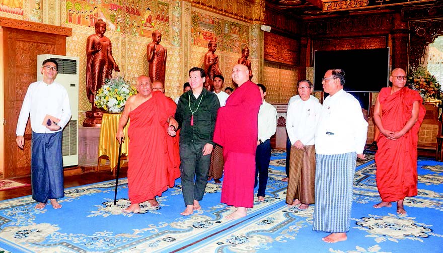 They later travelled to the Sitagu International Vipassana Academy in Sagaing. There, they paid their respects to Dr Bhaddanta Nyanissara (Sitagu Sayadaw), the State Ovadacari­ya, Shwegyin Nikaya Chairman, and Chancellor of Sitagu World Buddhist Universities and Sit­agu Hospitals. Discussions fo­cused on Buddhism promotion and propagation.