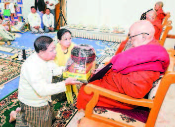 The Senior General and his wife donated Kathina robes and alms to Lewe Paukmyaing Mon­astery Presiding Patron Abhidha­ja Maharatthaguru Bhaddanta Janinda and Abbot of Maravijaya Monastery Sayadaw Aggamaha Pandita Bhaddanta Neminda.
