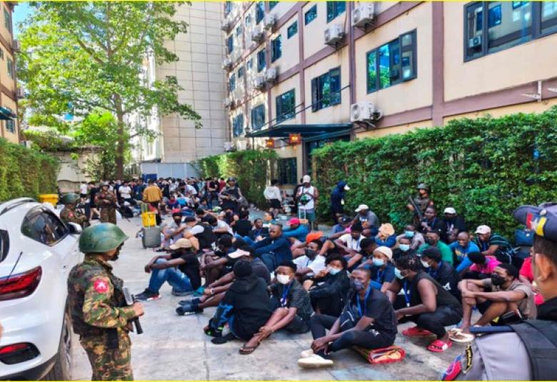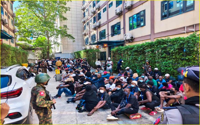Yesterday, the authorities arrested and detained a total of 156 foreign nationals in the Shwe Kokko area for involvement in online fraud and online gambling, including 65 Chinese, eight Vietnamese, one Malaysian, 13 Kenyan, four Ethiopian, six Indonesian, six Ugandan, one Nepali, 20 Indian, one Zimbabwean, seven Filipino, two Rwandan, three Nigerian, five Thai, one Kazakh, one Uzbek, one Benin, eight Burundian, one Togolese, and one Singaporean, who had been hiding after committing offenses via neighbouring countries, including Thailand. As part of the ongoing operation in the Shwe Kokko area, a total of 1,746 foreign nationals who entered Myanmar illegally have been arrested from 18 November to date. Moreover, authorities have seized 2,893 computers, 21,750 mobile phones, 101 Starlink satellite receivers, 21 routers, and a large quantity of industrial materials used in online fraud and gambling activities. The operation is continuing.