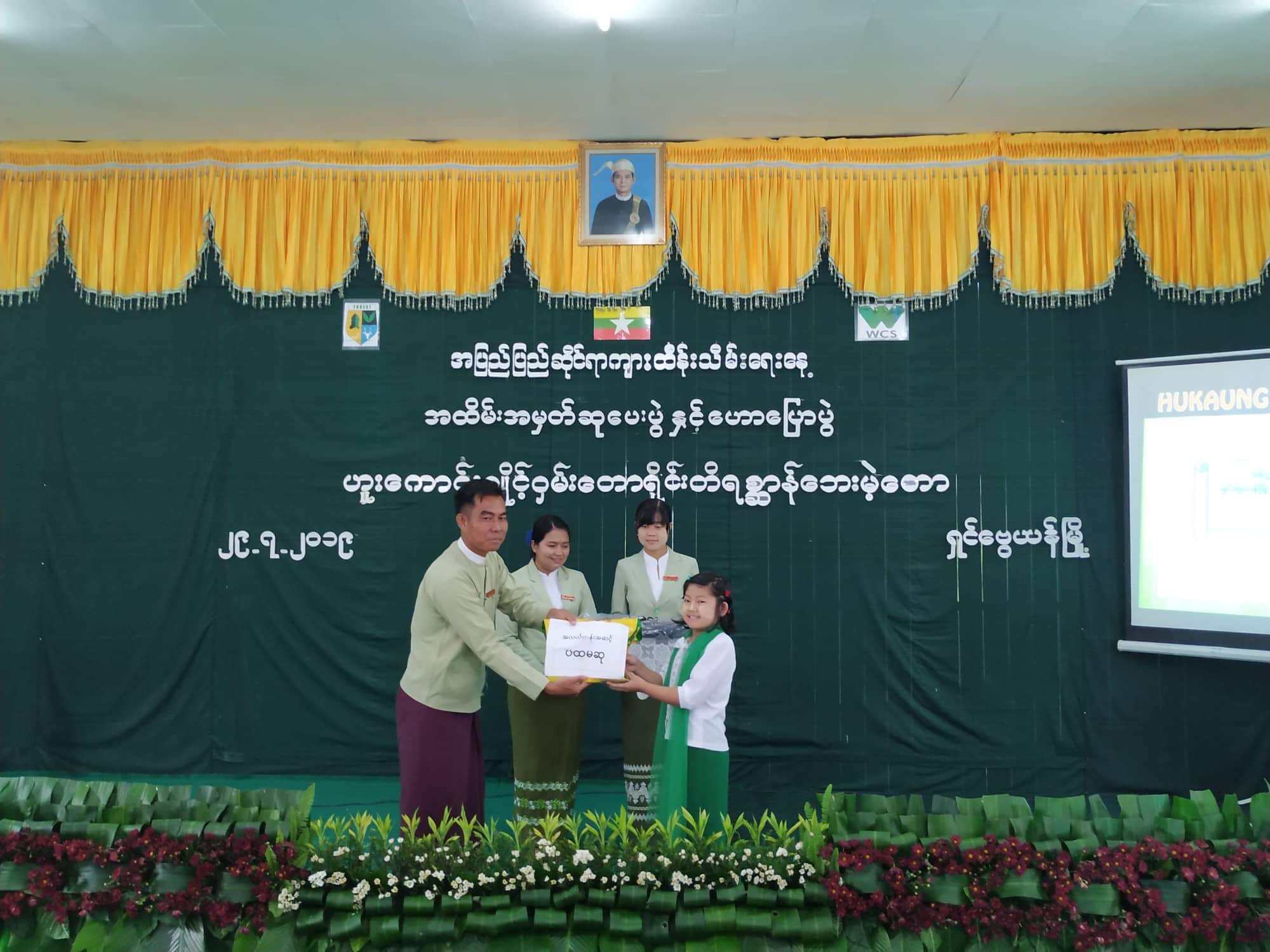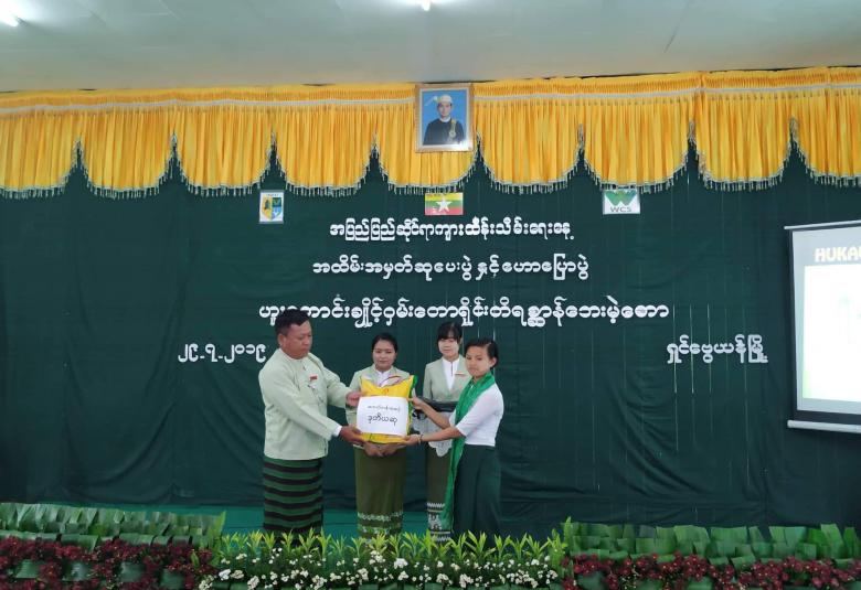 First, Kachin State MP U Zaw Win shared knowledge about wildlife animals in Hukawng Valley and called for public participation in conservation of wildlife animals. Township Administrator U Naing Win Kyaw also disseminated knowledge about tiger species. Next, a ranger from the Forest Department briefed the celebration of international tiger day and implementation of the policies.